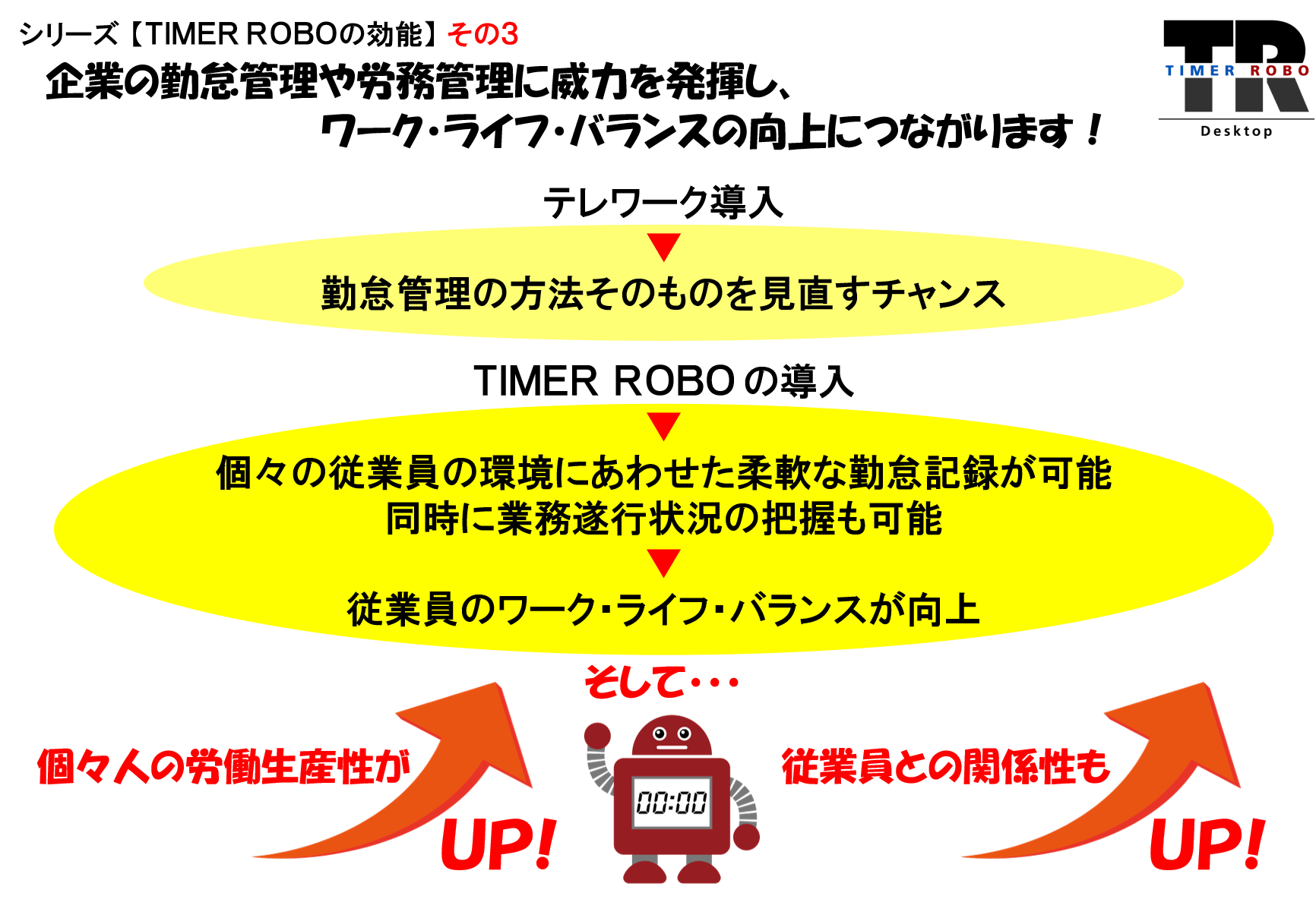シリーズ 【TIMER ROBOの効能】 その3:企業の勤怠管理や労務管理に威力を発揮し、ワーク・ライフ・バランスの向上につながります!