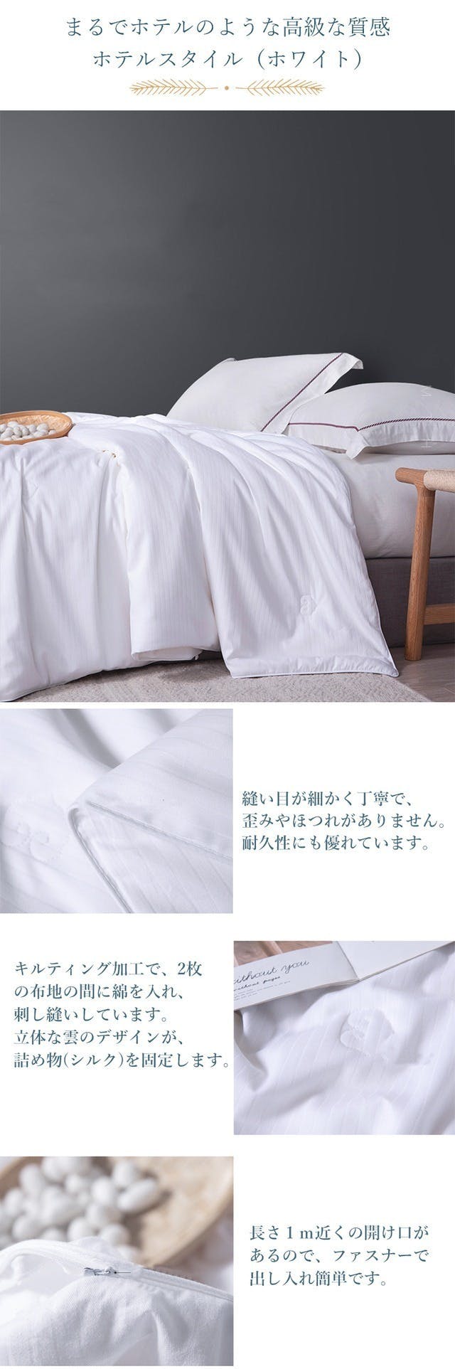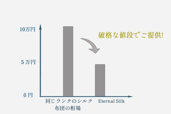 しかし『Eternal Silk』は、お手頃価格で最高級のシルク布団をお届けできるよう、製造元との交渉及びお買い求め安い価格でより多くのお客様にご提供したいという考えを軸に、今回は破格のお値段で提供する事に致しました。
