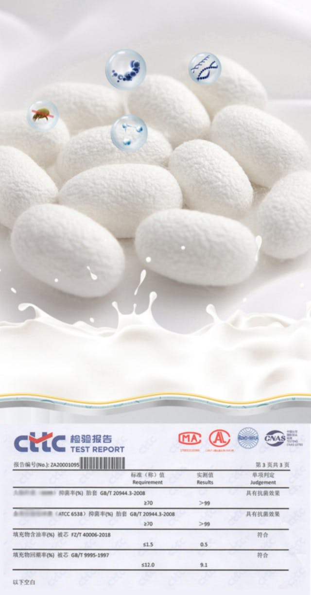 『Eternal Silk』のシルク布団は認証機関のチェックを経ており、抗菌効果を実証しております。