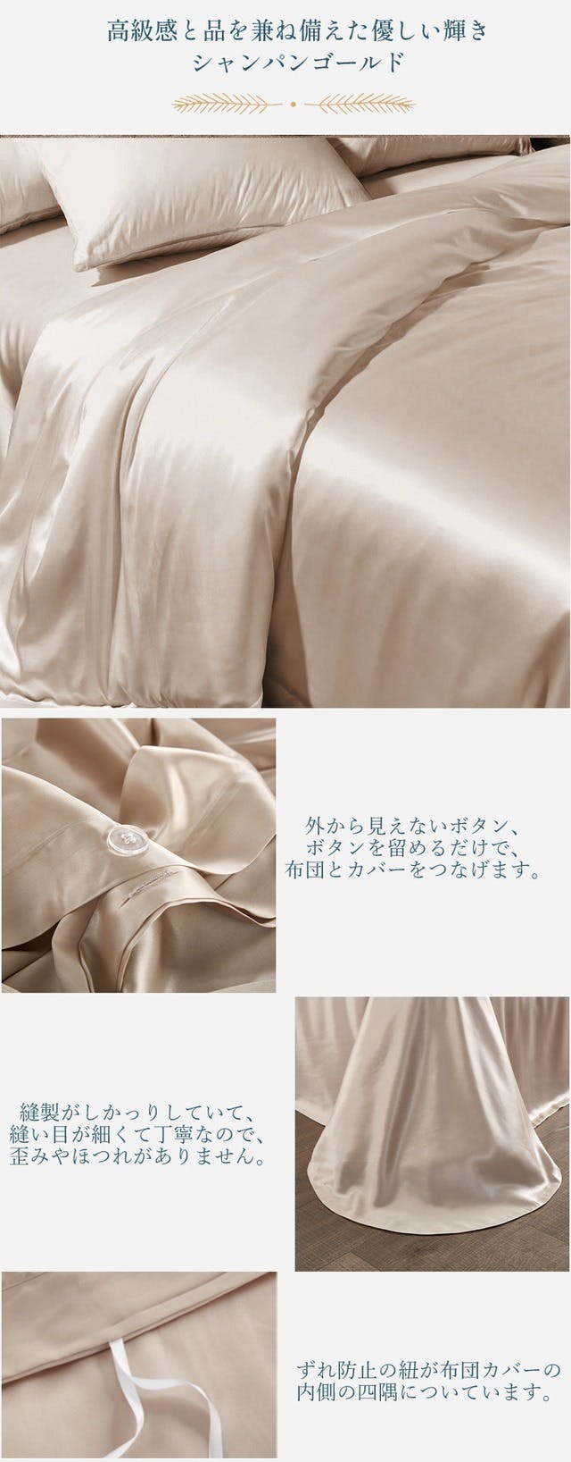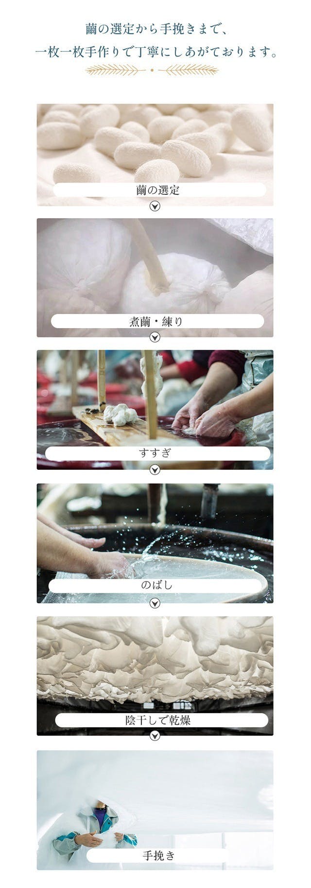 ※側生地はシルクを使用しておらず、【真綿(シルク)布団+シルクカバーのセット】は「テンセル」、【真綿(シルク)布団+綿カバーのセット】は「綿」を使用しております。側生地にシルクを使用すると、詰め物の真綿を固定する力が弱くなり、耐久性が劣れます。皆様に長く使って頂けるよう、側生地にはシルク以外の素材を使用しております。