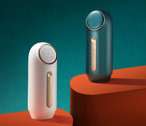 JOVS miniのデザインは、人間工学の原則に則った機能性と美しさの両方を備えたジオメトリックなスタイルを採用。カラーは落ち着いたグリーンとレトロホワイトの2種類。ともに品のあるマット仕上げで、ダイヤルや光を照射するヘッド部分、ボタンなどに豪華なシャンパンゴールドを使用しています。自分へのご褒美として、大切な人への贈り物としても、思いやりのあるプレゼントです。