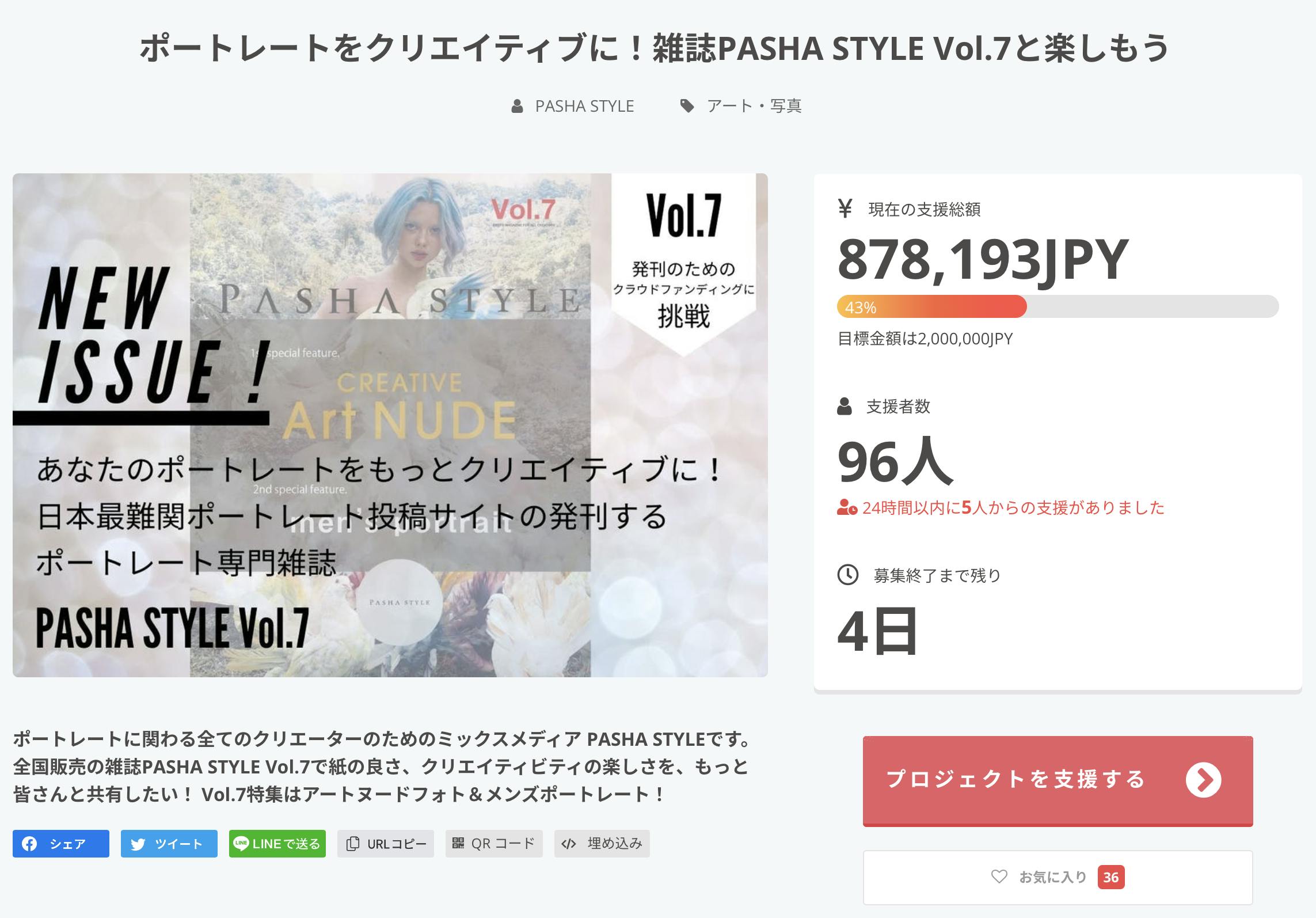PASHA STYLE Vol.7 の発刊、それに関する制作費を集めることが今回の目的です。