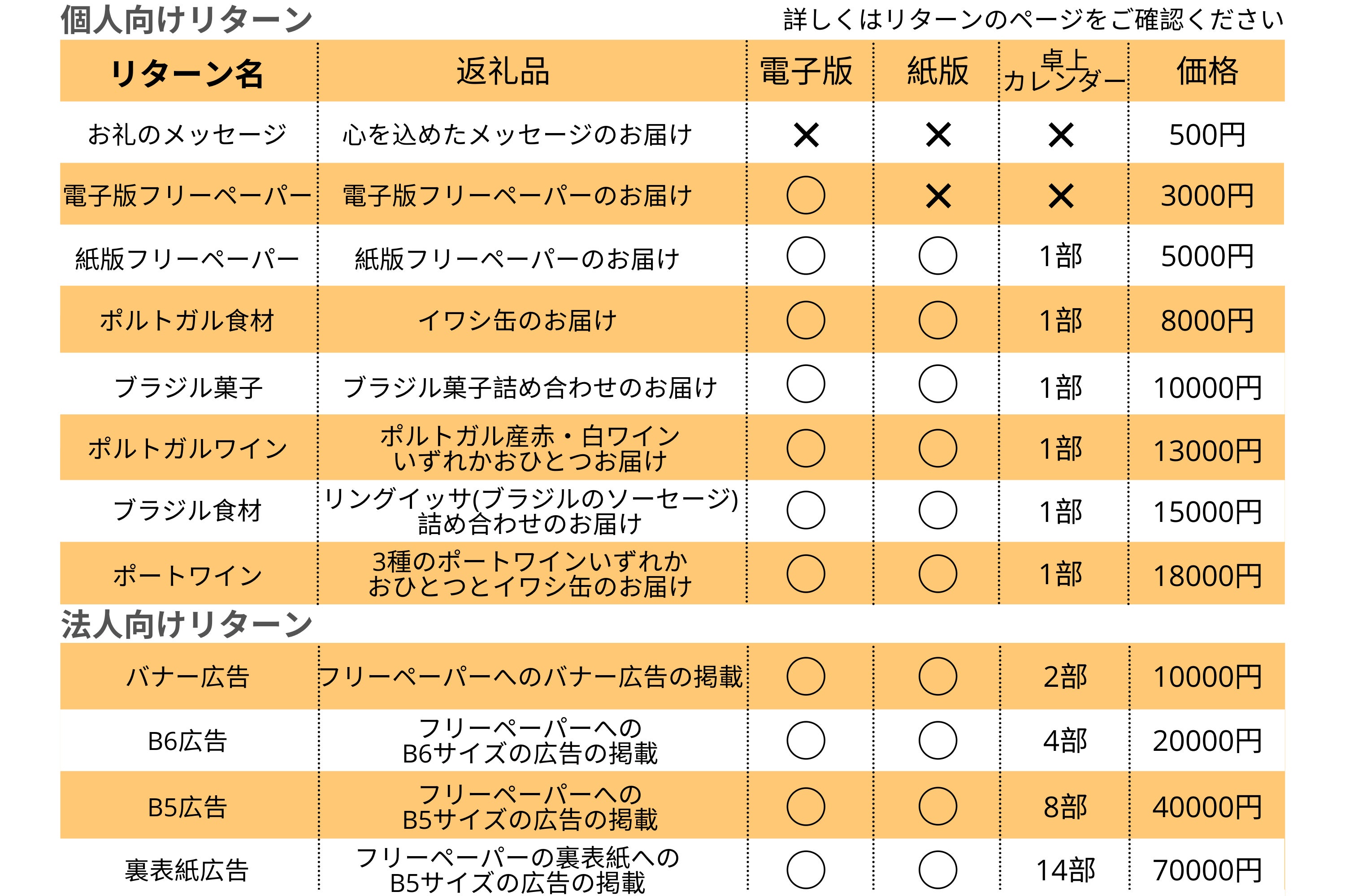 郵送でお届けするリターンには、もれなく紙版フリーペーパーとEstudamos Português!オリジナルのカレンダーを1部ずつお付けしてお送りします!