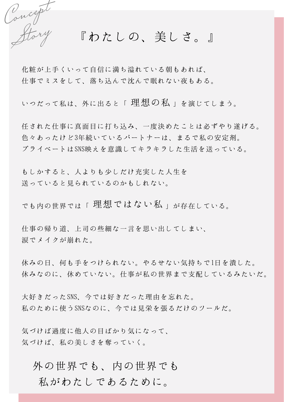 メッセージである「わたしの、美しさ」に