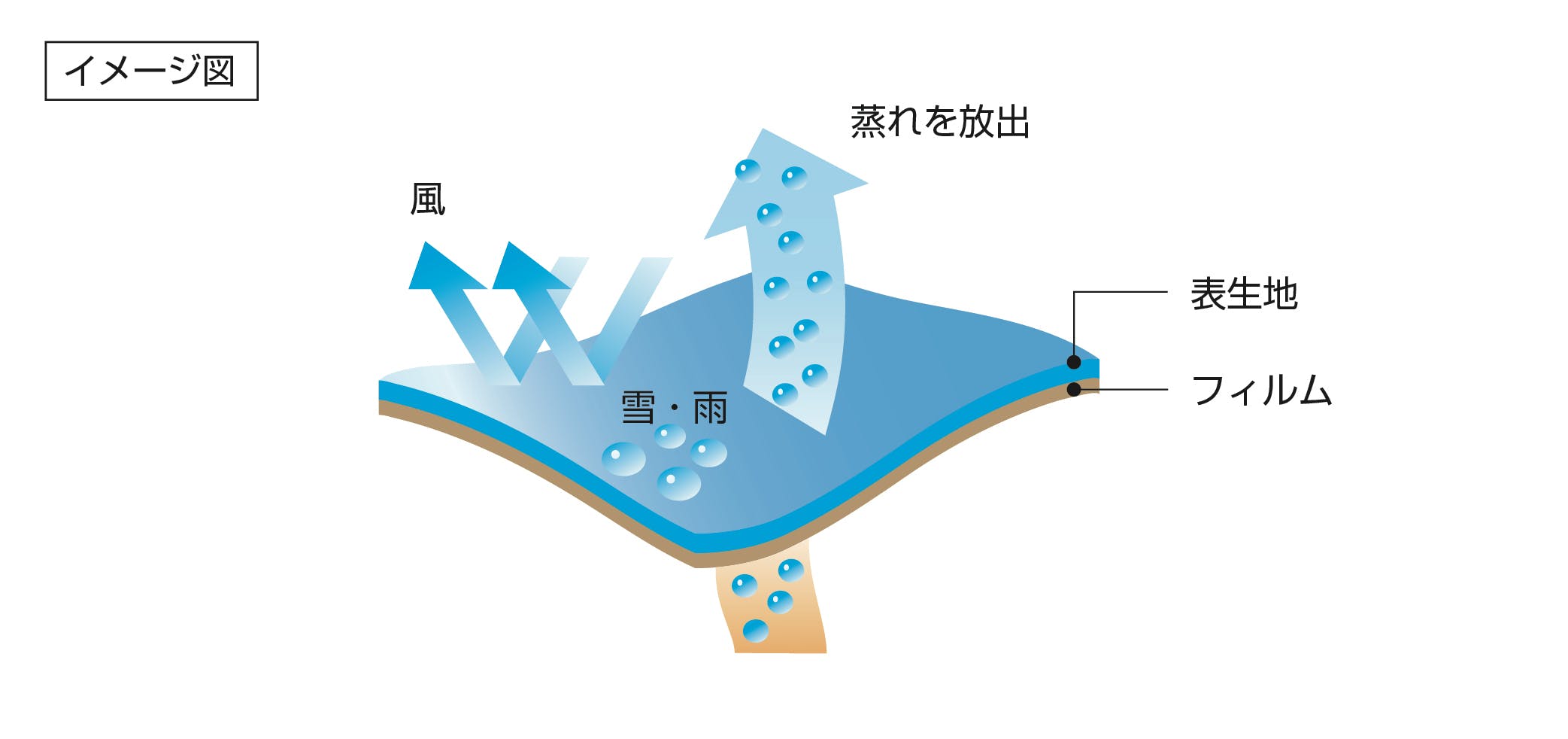 ・非常に薄くソフトな風合いながら、外部からの水・風を完全シャットアウト