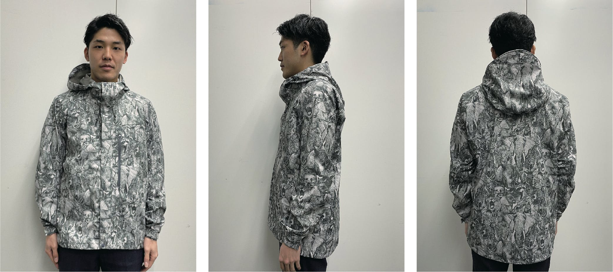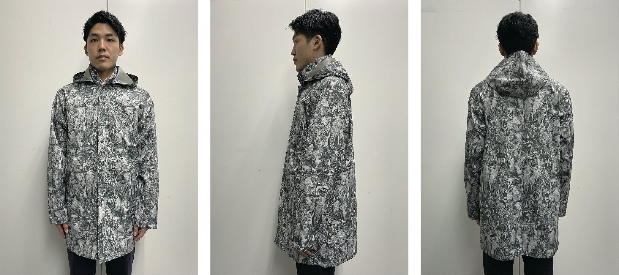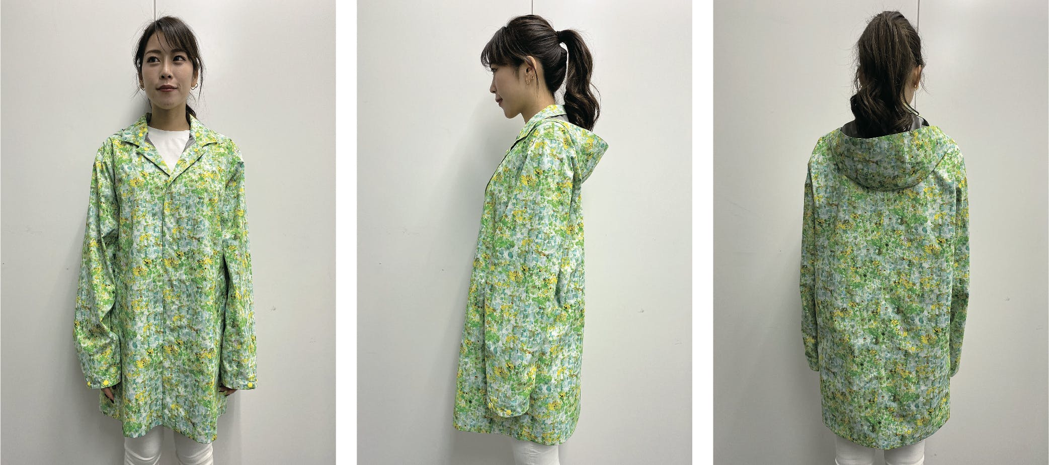 世界でも有数の「生地・製品から再生する技術」で作られた再生ポリエステル素材RENU®︎に、メッセージ・世界観を前面に出したnowartt Piece of The EARTHのテキスタイルデザインを乗せ、テックワン(石川県)の最高級品質の特殊フィルム・加工で防水性・透湿性・撥水性を極限まで引き上げ、匠の技術が継承されるオンヨネ(新潟県)の工場で縫製という、環境配慮、デザイン、高機能、伝統技術の要素をふんだんに盛り込んだ本格レインウェアを開発しました。レインウェアとしての機能を兼ね備えていることはもちろんのこと、ファッションとしてのタウンユースやアウトドア向けにも最適な逸品です。