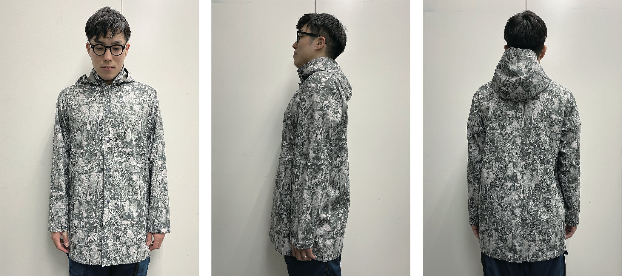 ※普段XLサイズを着用している男性が、「Rain Coat」のLサイズを着用しているイメージです。 177cm 75kg 「Lサイズはピッタリしているので、購入するならLL サイズにします。」