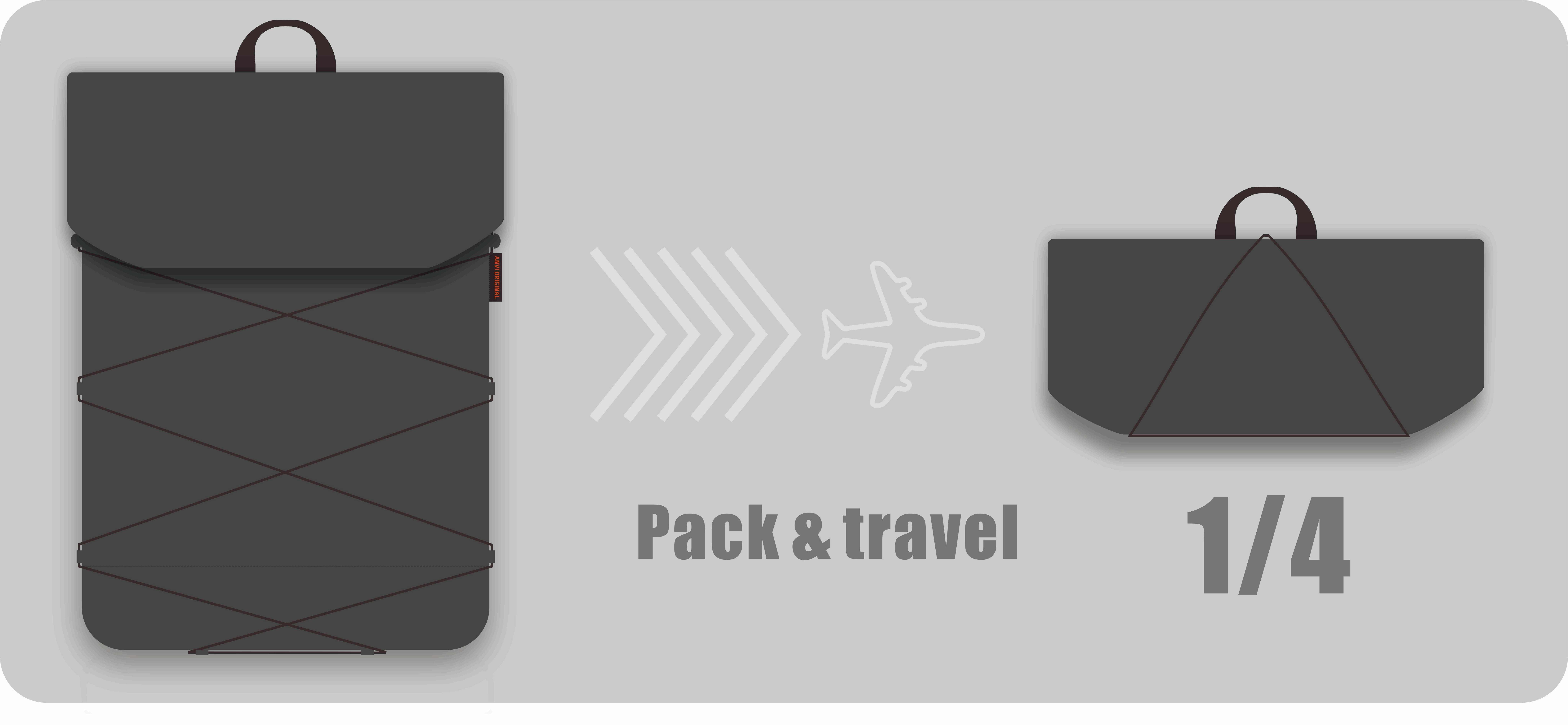 しっかりとした生地で作られたバックパックにも関わらず、折りたたむと元の大きさの4分の1にまでサイズダウンすることが可能。スーツケースやカバンにスッと入りますので旅行先に気軽に持っていけます。