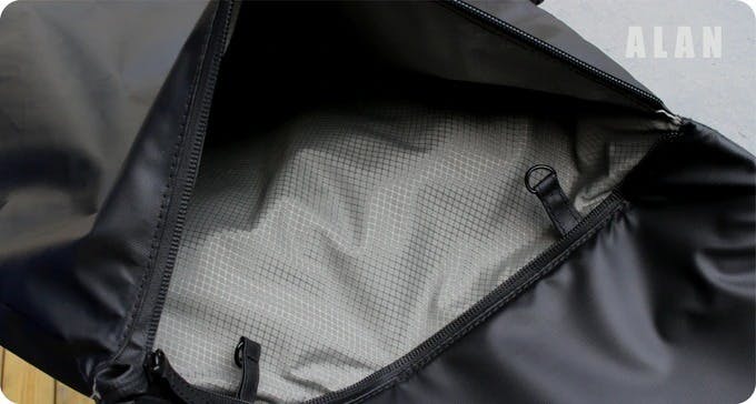内側のジッパーを閉め、マグネット式の蓋を深く閉めれば12L、ジッパーを閉めずにマグネット式の蓋を浅く閉めることで最大15Lとなっています。