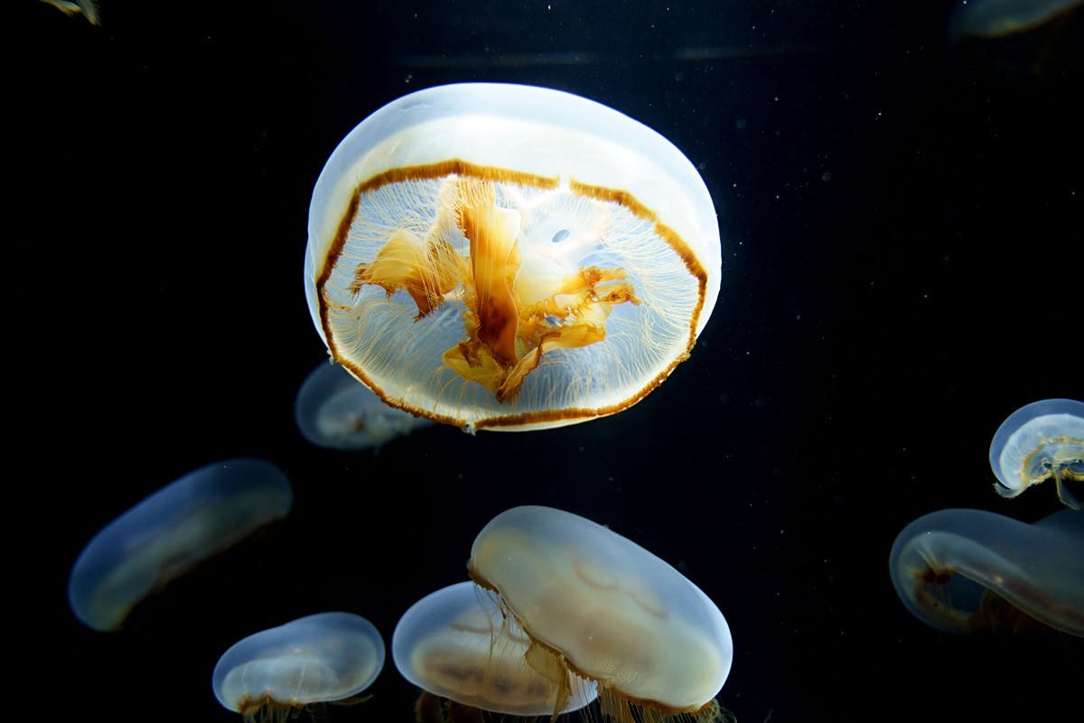 クラゲの神秘的な美しさに魅せられ、進化を続ける加茂水族館。常時60種以上ものクラゲを展示し、その生態や魅力をわかりやすく伝えています。中でも「クラゲ解説コーナー」では、様々な成長段階のクラゲを間近で観察でき、クラゲのえさやその食べ方を見られるなど「クラゲのなぜ、なに?」を学ぶことができます。