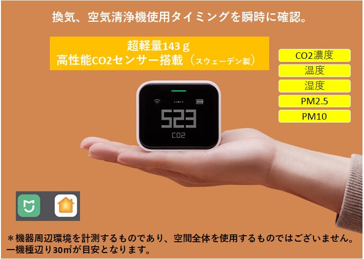 CO2の濃度を色と数値でわかりやすく認識できます!