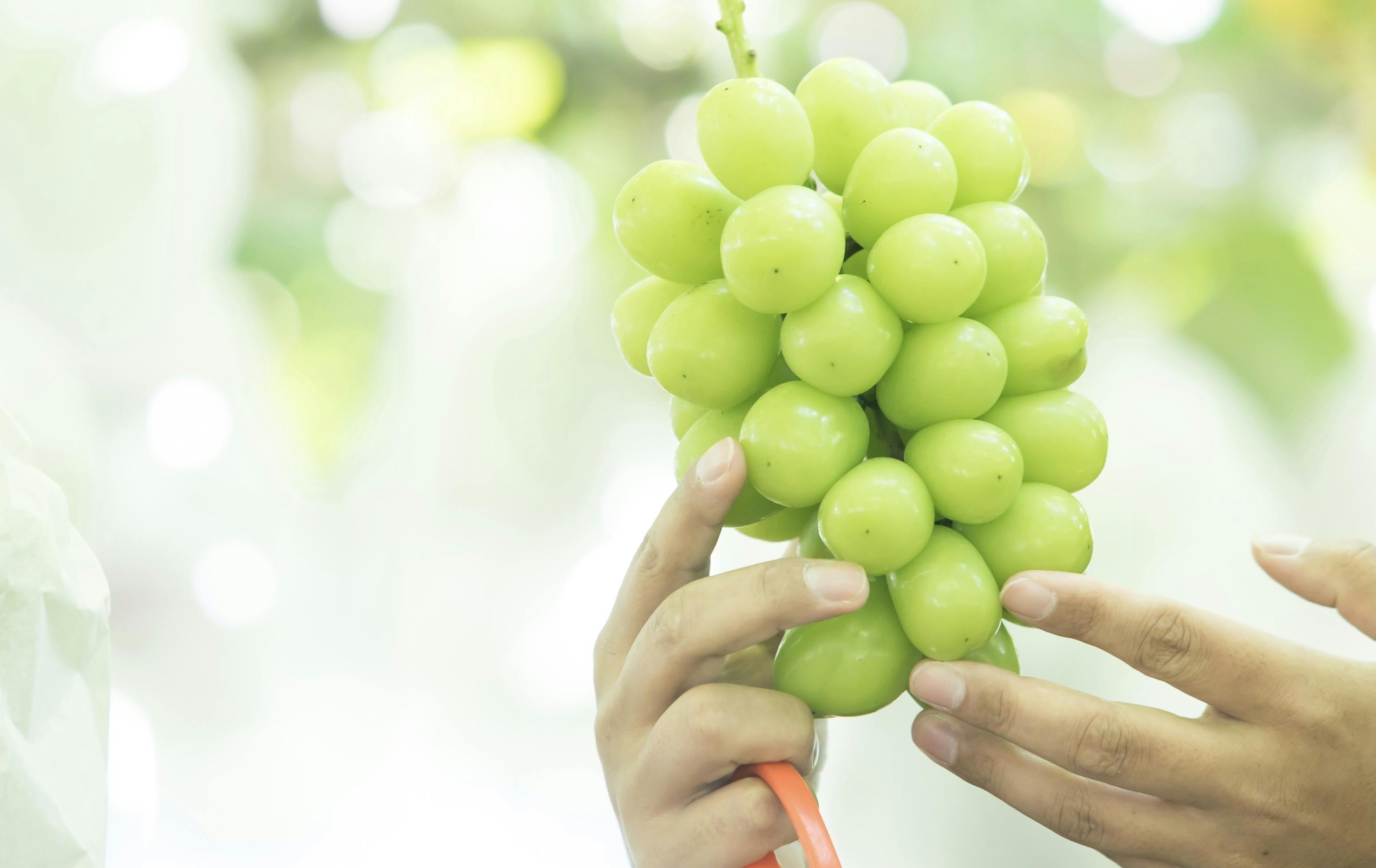 今、一番話題を集めている新しいぶどうです。酸味が少なく、皮ごと食べることもできます。