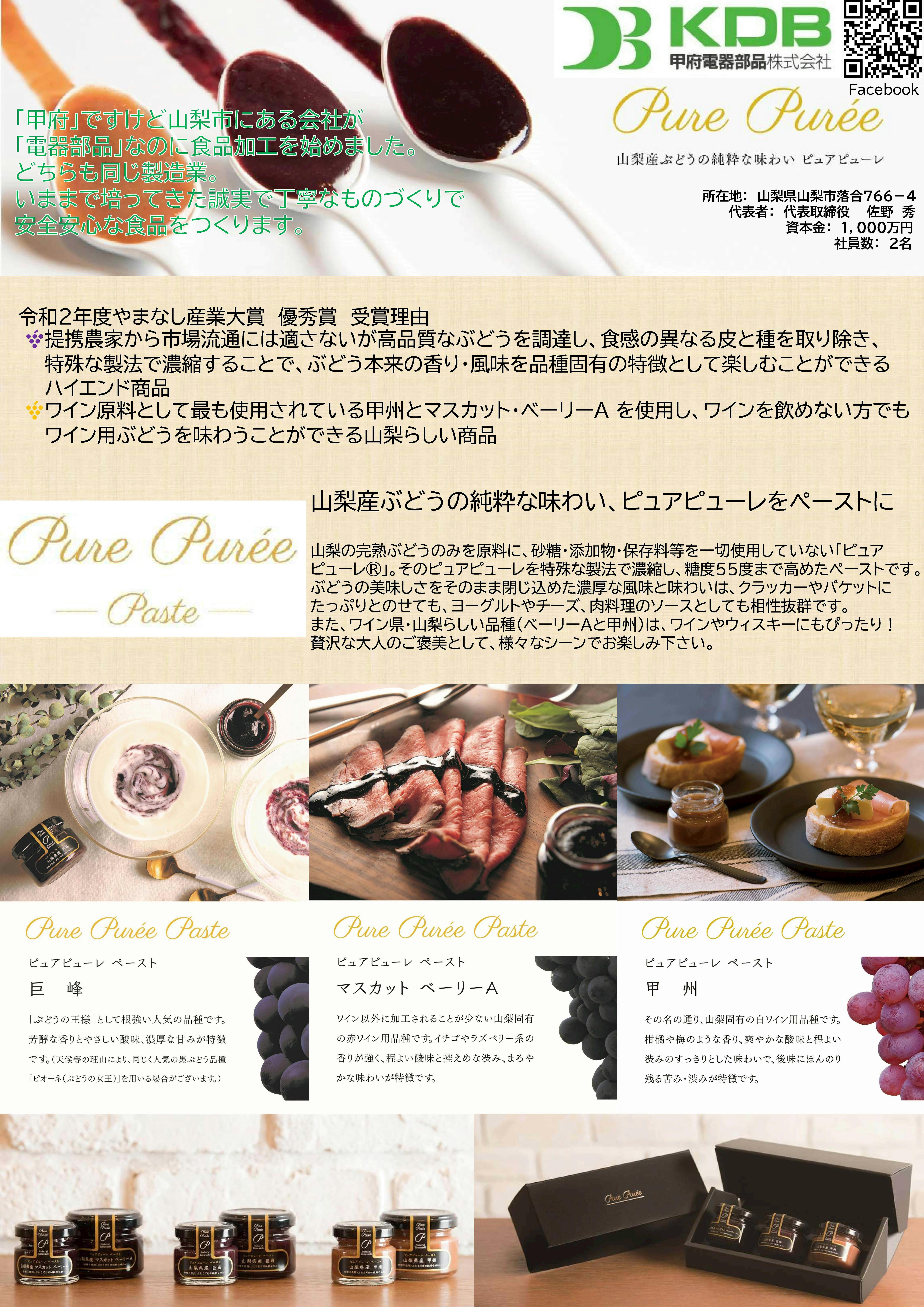 『ピュアピューレペースト』は令和2年度やまなし産業大賞を受賞しました