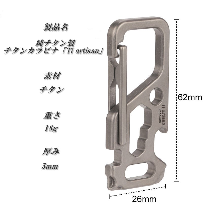 ※純チタン製チタンカラビナ「Ti artisan」 の重さは18gです。