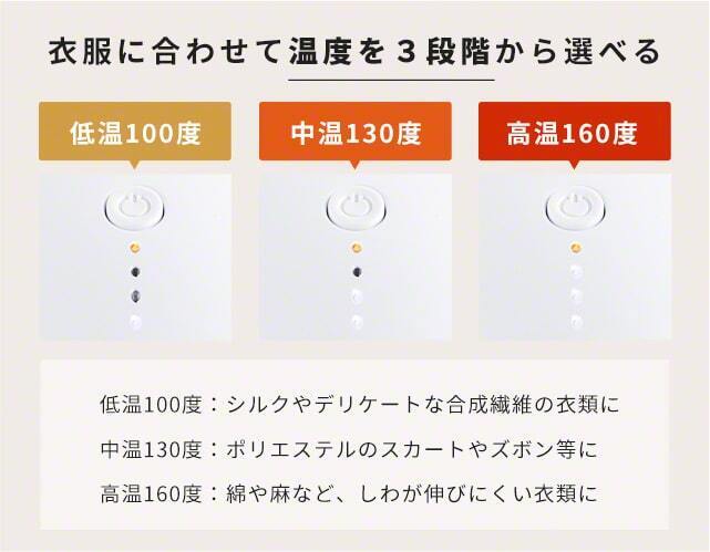 使い方は簡単、電源ボタンを長押し、その後温度を選ぶだけ。