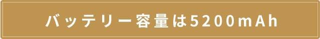 バッテリー容量は5200mAh、付属の充電ケーブルを使ってACアダプタやパソコンから充電できます。