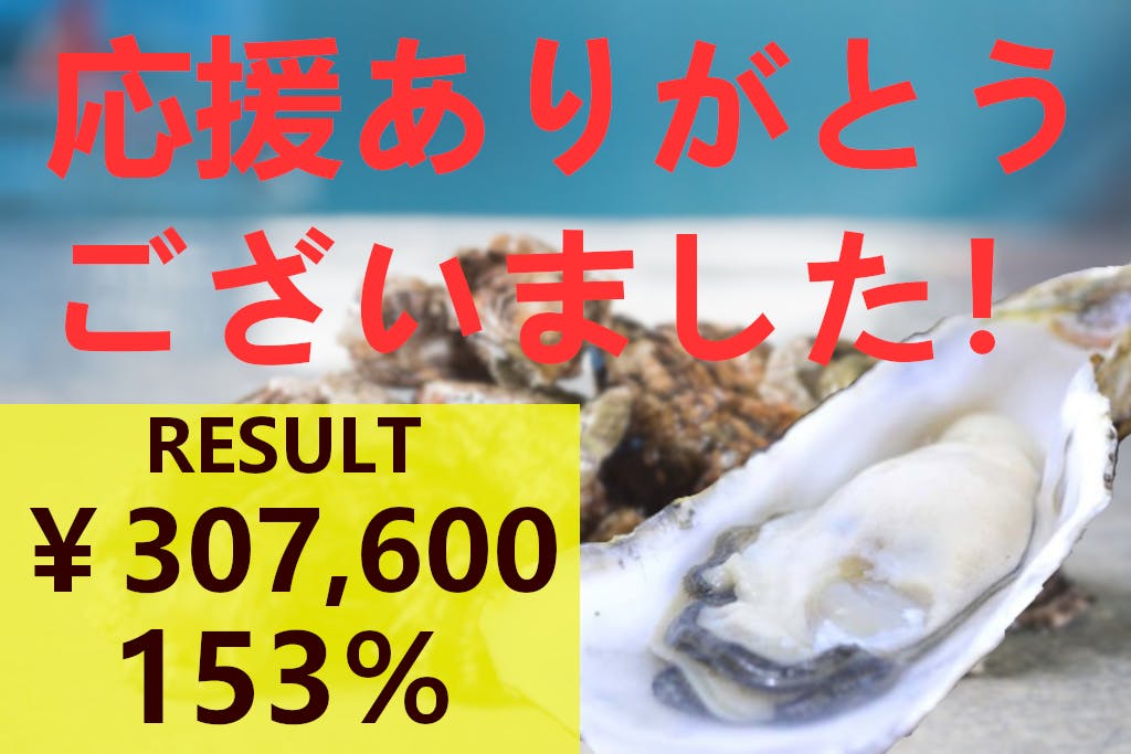 2021/02/28 00:21こんばんは。企画発起人の友野雅天です。皆さまに応援いただいたクラウドファンディング企画「規格外の牡蠣も、美味しく食べてもらいたい!!」は・62名の方から・合計307,600円のご支援をいただき・153%の達成率で無事に終了いたしました!公開前から支援の約束をして下さった方、公開後に知って応援して下さった方、大勢の方たちの応援のおかげで、ここまで来ることができました!本当にありがとうございます!支援いただいた方には、後日リターン品の牡蠣・Eメールのお届けがありますので、そちらも楽しみにお待ち下さい。最後にもう一度。皆さん、本当にありがとうございました!!企画発起人 友野雅天(とものまさひろ) もっと見る