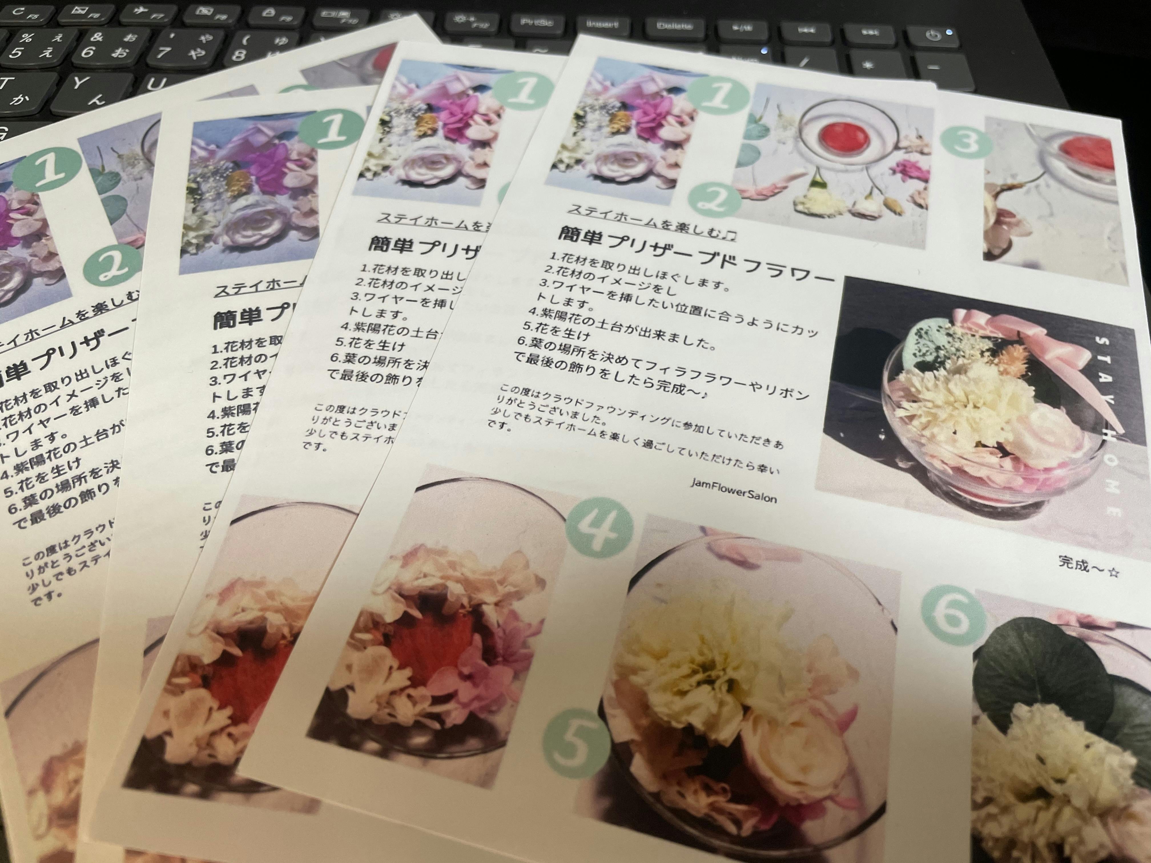 各リターン3名様にステイホームを楽しむ簡単プリザーブドフラワーキットをお付けいたします。
