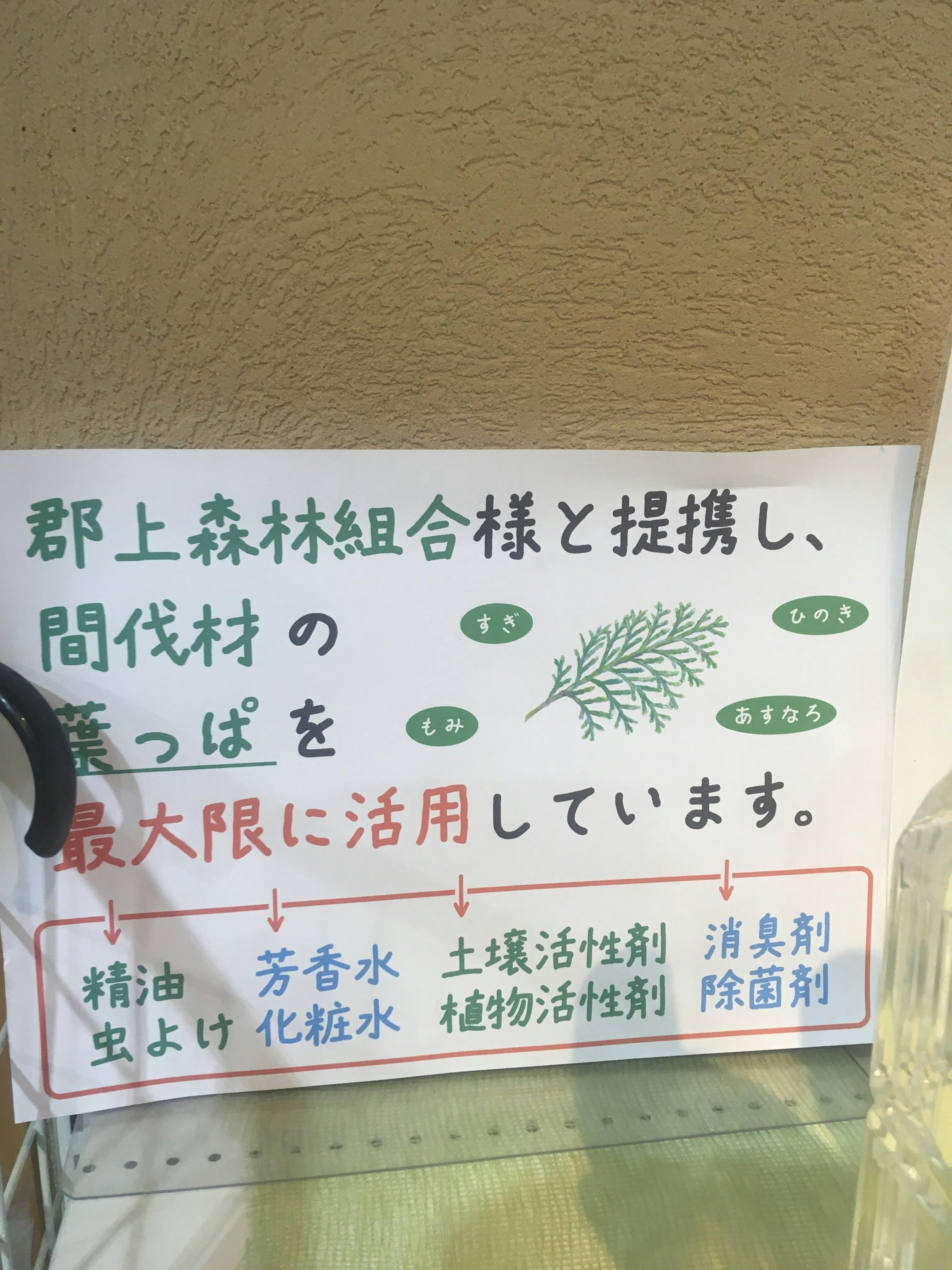伐採した木は割り箸や精油工場に持ち込み精油成分を多く含む高品質の精油を作り出す事です。天然の精油は消臭 除菌 芳香 アロマ 浄化 肌ケア 防虫 ウイルス対策の原料となります。残った枝や小径木などは粉砕され亜臨界精油装置に入れ多孔質化したチップ材にし廃水処理材または土壌改良材として使用します。