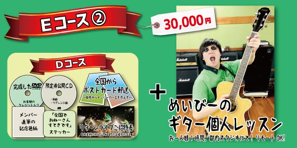 ★Dコースに加え、Vanityyyのギタリストめいびーいちのへの個人レッスンが受けられるコース。マンツーマンであなただけのために心を込めてギターを教えます♡