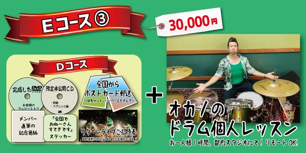 ★Dコースに加え、Vanityyyのドラマーオカノ・タケノリの個人レッスンが受けられるコース。