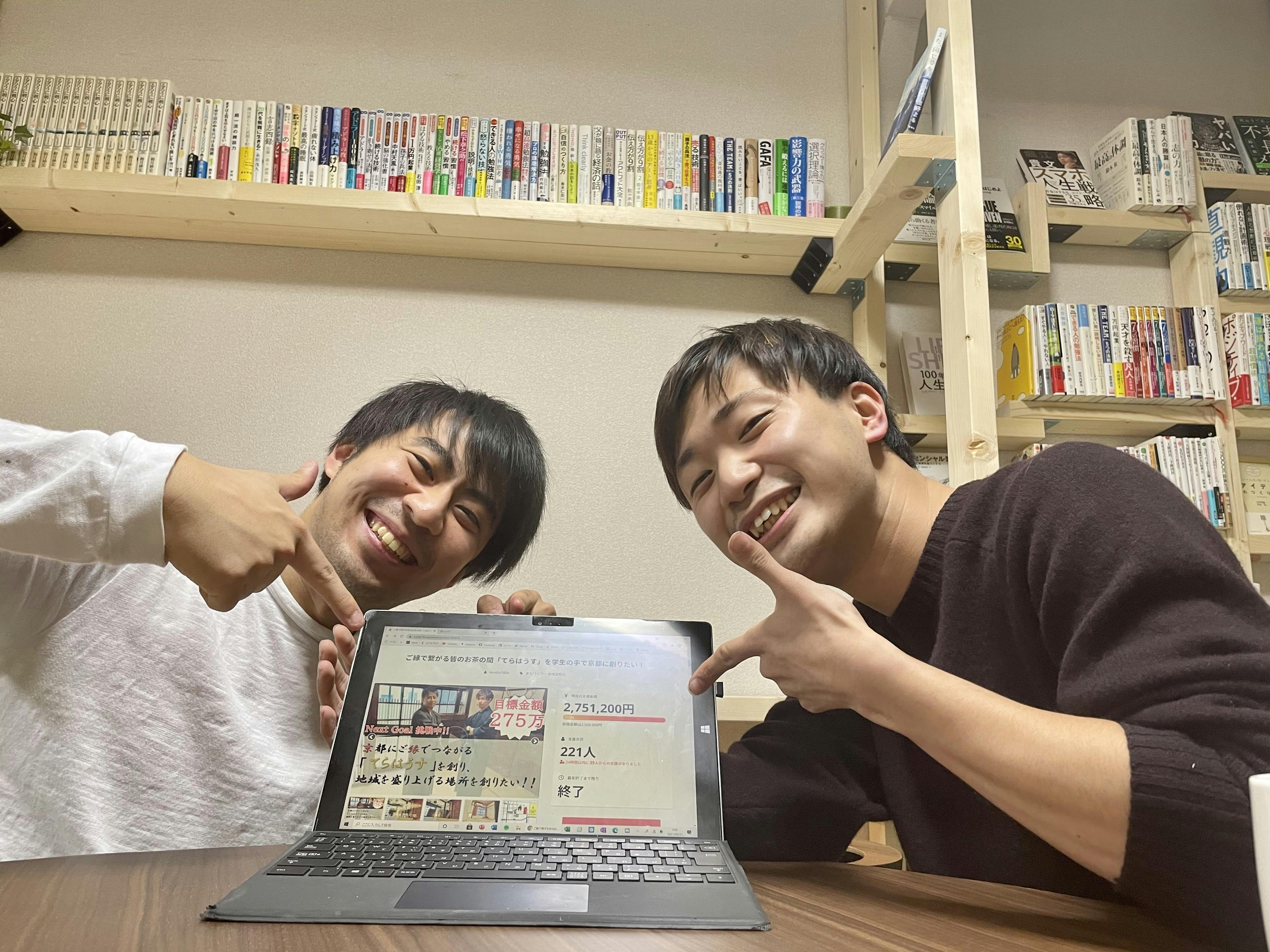 2021/03/31 11:00【僕1人の挑戦が気がつけば1人の挑戦ではなくなってた-クラファン57日の挑戦を振り返って-】2020年10月7日—-僕が出来なかった事が川﨑君になら託せる—-そう言っていただき、京町家を引き継ぐ決心をした日でした。その後それを「てらはうす」とし、事務所だけではなく、ご縁で人と人を繋ぐ場にしようと決意しました。そこから2ヶ月後、お世話になっている大人の方にクラファンという手段をすすめられました。僕は元々クラファンという手段に否定的でした。クラファンは借金と同じだとお世話になってる経営者から言われてたからです。しかしながら、よく考えれば当たり前だよなと。お金をいただくのだから対価(リターン)をその人に返すのは当たり前だし、じゃあリターン以上のものを返せていけばいいのではと思えるようになりました。また、銀行の借入とは異なり、クラファンは個人、企業、地域の方といった多くの方から支援として資金をいただく事ができ、その方々にリターンとしてお返しをする事ができます。お金を払うという行為を得て人や組織は自分のものとする事ができます。てらはうすを自分の第2、第3の家や京都での拠点にしてもらいたいと思った僕にとってクラウドファンディングという手段が、1番良いのではないかという決断に至りました。そして、弊社の今村に直ぐに相談「とっしーのやる事なら俺も頑張るよ、やろう」背中を押してくれました。しかし、クラウドファンディングをどのように進めたらいいのか右も左も分からない状況でした。顧問の方に記事の書き方などを教わりながらCAMPFIREのページを書いたりリターンを考えたりと1からスタートしました。そしてスタートした2021年2月2日。57日間の挑戦。慣れない電話アポや緊張しながらの企業様とのお話、動画配信、これだけ頑張ってるのに伸びないのか、という本当に苦しい時期もありながらスタートしました。多くの方からは達成は無理だと思われ、言われ、中には絶対に厳しいとも言われてきました。「絶対ギャフンといわせたる」そう心の中で返答してました。そのような中の250万All or Nothingの挑戦が無事成功。電車の中達成に気付きましたが本当に声をあげて喜びそうになるくらい嬉しい出来事でした。それだけではなくネクストゴールにしていた275万も達成。目標支援者数も200名達成。最終日には35名の方からご支援いただき、一時期人気急上昇としてCAMPFIRE上の上位プロジェクトととして掲載され全てが良い形で幕を閉じました。このクラファンを進めていったのは僕やいまむーだけではありません。リターンの画像を作ったり動画の編集をしてくれた方。シャツのデザインをして下さった方。イメージパースを作っていただけた方。イベントの登壇のお誘いをして下さった方。カメラで最高の写真を撮って下さった方。一緒にSNSで盛り上げて下さった方。本当に様々な方を巻き込ませていただき皆で盛り上がりながらクラウドファンディングを無事に終わらせていただくことができました。僕1人の決断が、挑戦が、気がつけば2人、5人、10人、50人、100人、200人と増えていき皆の挑戦へと変わっていました。また、プロジェクトを通して出会えた方々も山ほどいます。このご縁をこれからも大切にしていきたいです。最後に、このプロジェクトに関わっていただけた全ての方に感謝申し上げます。成長をさせていただき、沢山の感動をいただき本当にありがとうございました。クラファンが終わったこの瞬間がスタートラインだと思ってます。いままでは助走です。ご縁を繋ぐてらはうす-令和のコミュニティスペースと皆が認めて貰える空間を皆さんと作っていくようにここからスタートを切って頑張ります。57日間、そして、感動のフィナーレをありがとうございました。2021.3.30てらはうすプロジェクト代表川﨑敏矢 もっと見る