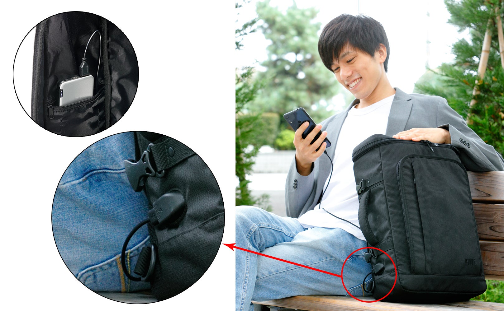 30名様限定で3WAYシートバッグ1個を18%引き。さらに当社のE-Elut モバイルバッテリーを1個プレゼントします。バッグの収納スペースにフィットする最適なサイズです。モバイルバッテリーは厚み10mmの薄型サイズながら10000mAhの大容量。 そしてPDとQC3.0の急速充電に対応しています。