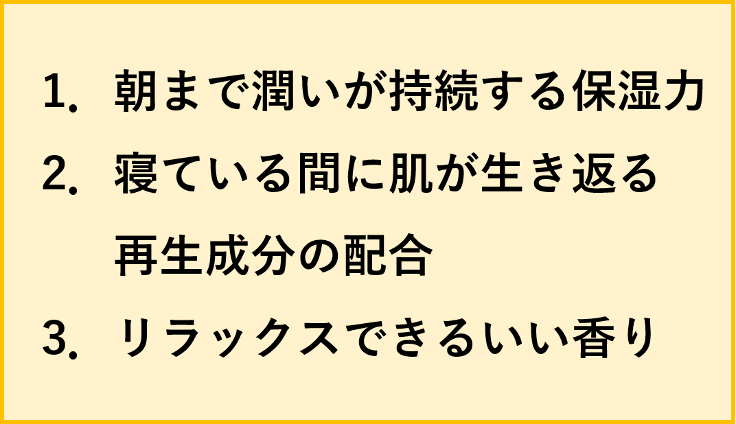 だけどそのような成分はナイトパックの前に使用する化粧品や乳液に含まれていることがほとんど。だから私たちは「朝まで持続する保湿力」を求めて