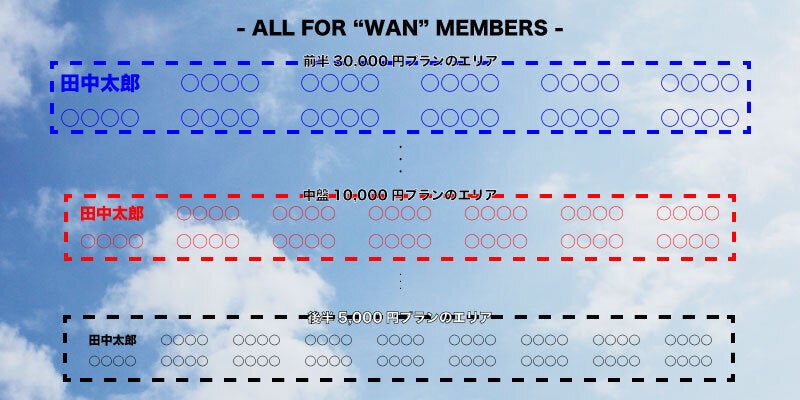 ・特設ページ「ALL FOR "WAN" MEMBERS」としてお名前を掲載いたします。