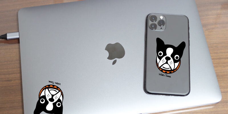 アイコンになっているブサ可愛なロゴ犬のステッカーを1枚お送りいたします。