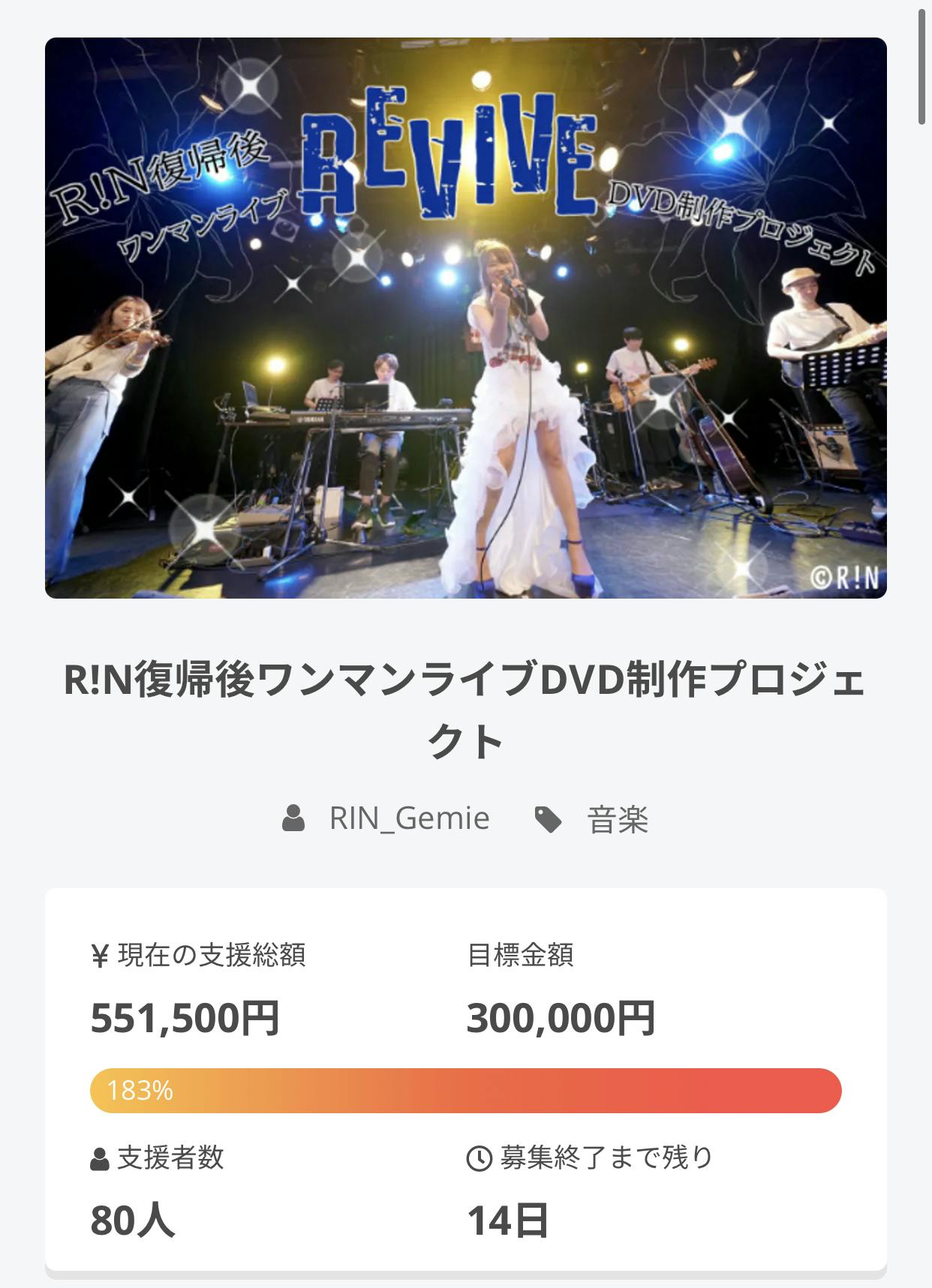 2021/09/16 15:59みなさんこんにちは!R!Nです。先月から始まったクラウドファンディング、いよいよ残り2週間になりました!現状のパーセンテージでもめちゃくちゃありがたいのですが、残り2週間でもっとDVDをたくさん羽ばたかせたいです!最後のゴールまで皆様宜しくお願い致します!R!N もっと見る