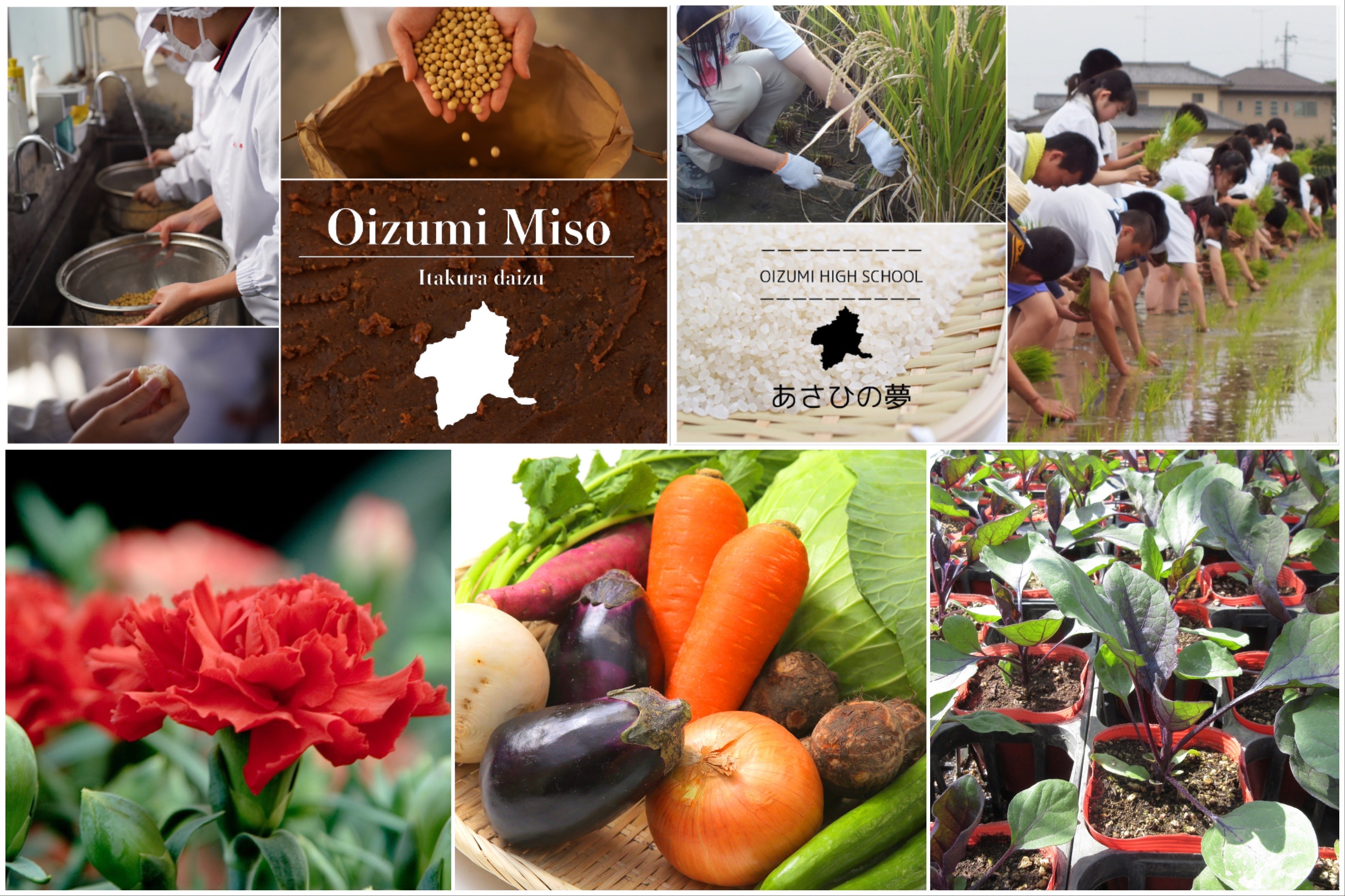 大泉高校で生徒が栽培・生産・製造した野菜、花、米、味噌をお届けします。