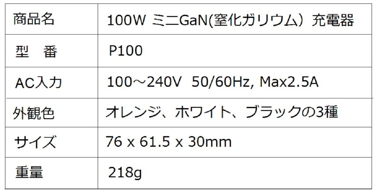POWER CUBE P100は最新技術 GaN(窒化ガリウム)搭載充電器です。高出力をキープしながら、小型化を実現しています。一般的な従来PD100W充電器に比べ体積比25%の小型化を実現しています。