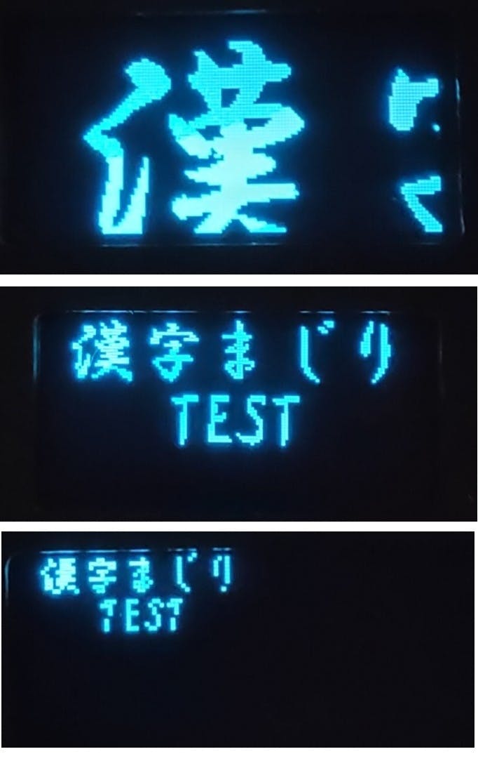 2021/02/14 18:55「クレイジースモール超小窓ディスプレイBW」でフォント変更してサイズを変更して表示してみました。フォントの変更はC:\Windows\Fontsフォルダにインストールされているフォント名が確認できますので、エクスプローラで参照して任意のフォント名を調べておきます。czsmnd f R "HG行書体" としてみました。‘HG’は全角ではなくて半角だとうまくいきました。次に文字の大きさを指定して表示します。czsmnd mb 0 0 60 "漢字まじり\n TEST"czsmnd mb 0 0 18 "漢字まじり\n TEST"czsmnd mb 0 0 8 "漢字まじり\n TEST"モノクロ版のBWはカラー版CLと比べると1ピクセルの通信データ量が1/24ですから表示もそれだけ速いです。通信速度を速く設定変更するとCLでも、もっと速く表示できます。 もっと見る思いの外、反響がいいのでリターン追加します。