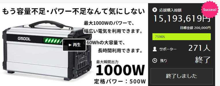 前回、初めてG500Lというポータブル電源のプロジェクトをさせて頂き大変な反響を頂きました。