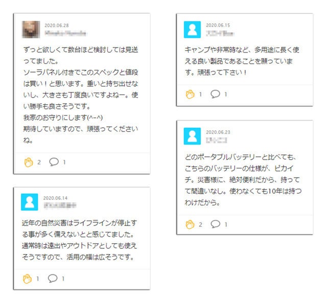プロジェクトの成功おめでとうございます。 私も支援させて頂きたいのですがたくさんの方から支援をされているのでキャパシティを超えているようでしたらかえってオペレーションを乱すのではないかと心配しています もし問題なくプロジェクトを進めることが出来て期限内で高品質なバッテリーを用意出来る状態を維持出来ているようでしたら支援をさせて頂きたいのですが現在の状況はいかがでしょうか?