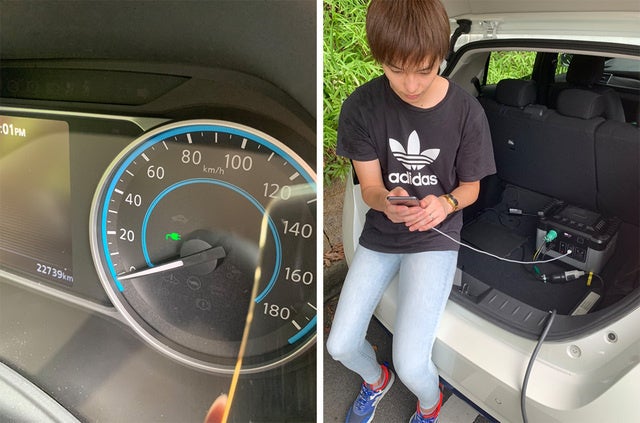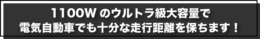 EV(電気自動車)のバッテリー切れでも安心の走行距離を保ちます。(リーフ 9-11kmの走行可能)