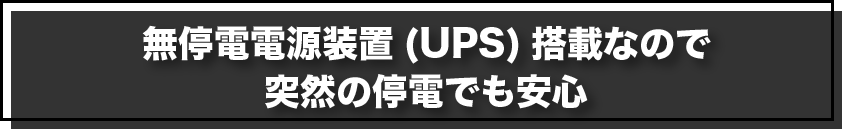 無停電電源装置(UPS)とは、停電などによって電力が断たれた場合にも電力を供給し続ける電源装置のこと。