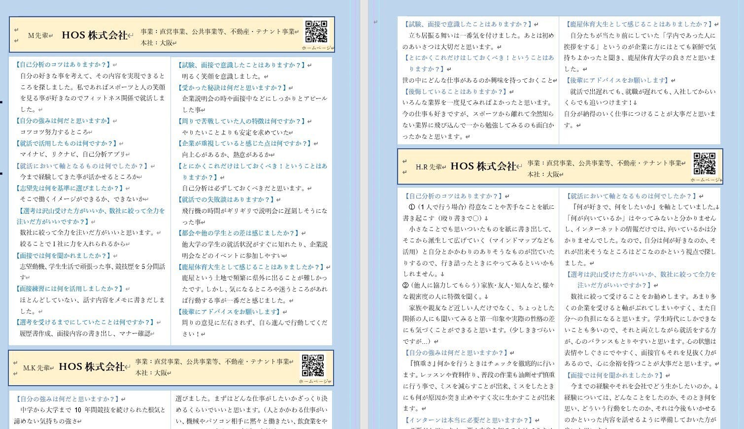 1.リターンご購入頂いた方の就活体験記+お名前など