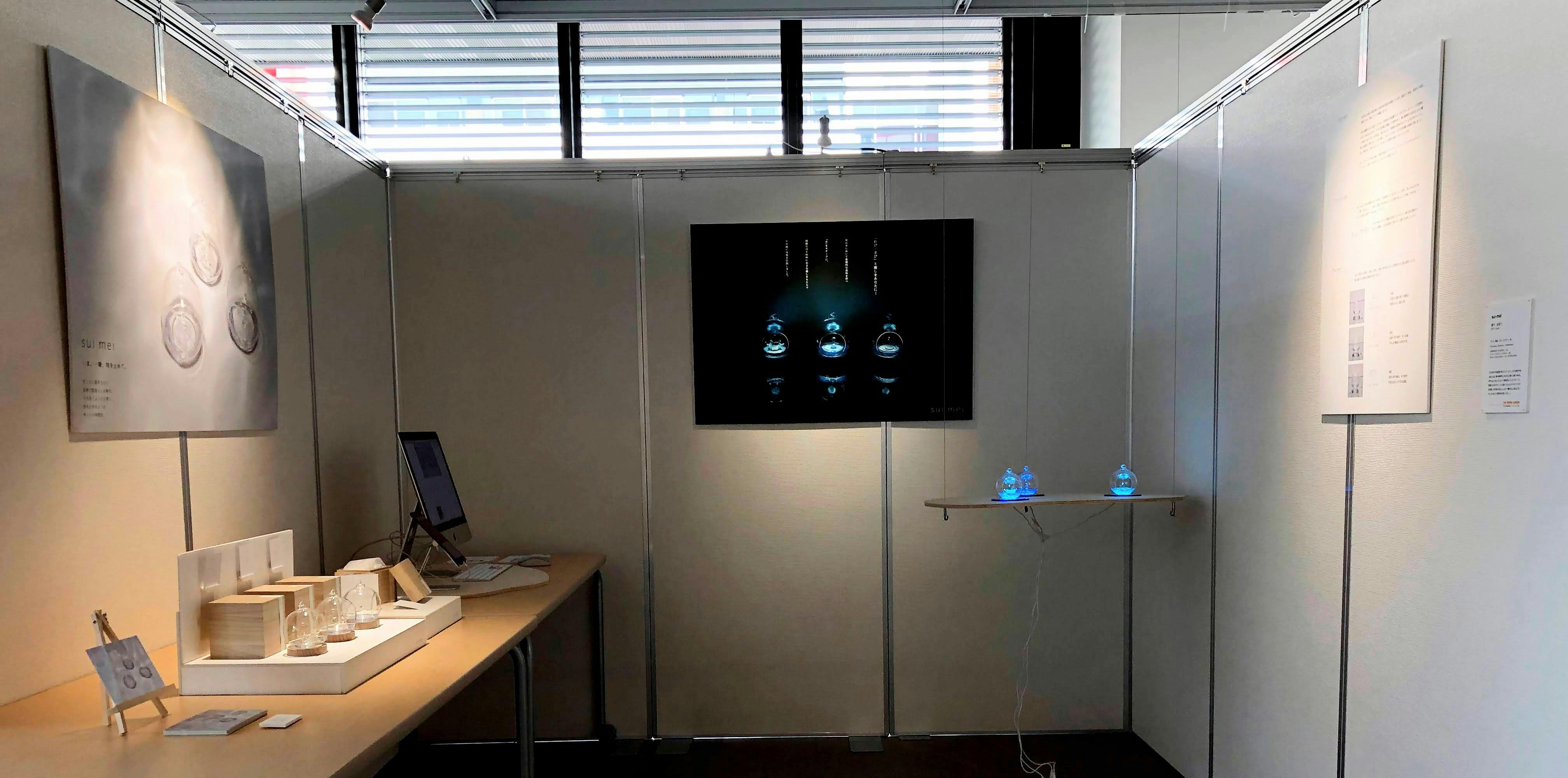 <作品名>「sui・mei」は風景の美しさを表す「山紫水明」から取りました。「水明」は”澄んだ水が光で美しく輝いて見えること”という意味があり、加えて、”水が命あるように表情を変えること”を喩えて水の命、「水命」という造語も当てて、2つの意から英字で「sui・mei」としました。