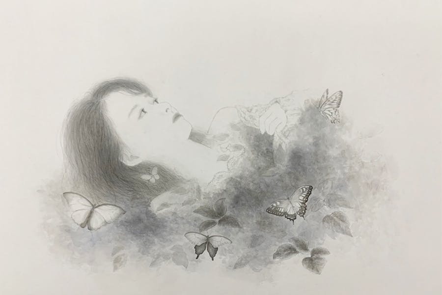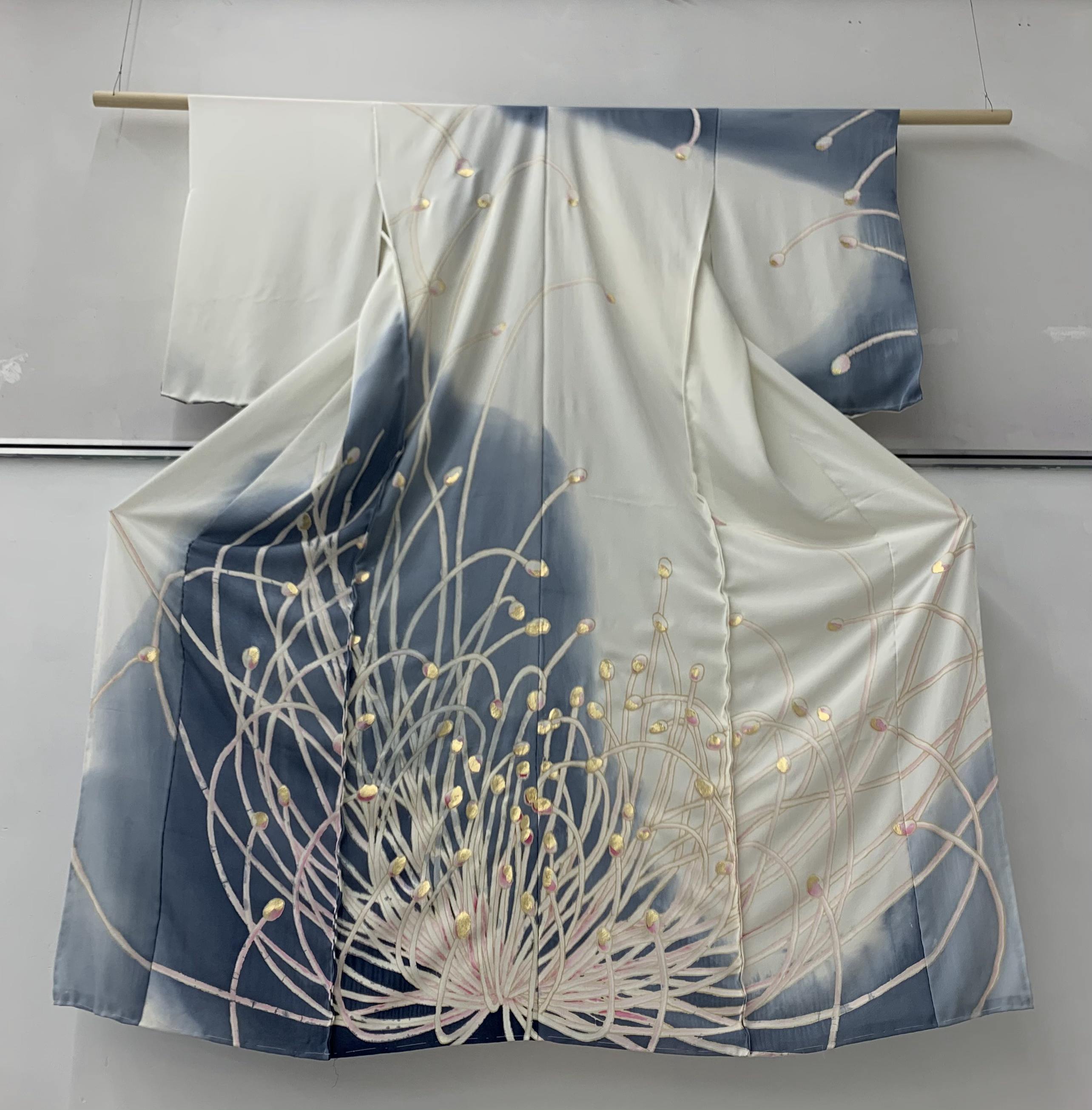 そして私は今着物職人を目指しています。着た人を特別にし、自分が主人公だと感じられる様な着物。日本画を学んできた私だからこそ描ける着物を求め、今回は日本画の作品と共に着物の技法である友禅を使用した作品をお届けしたいと考えています。