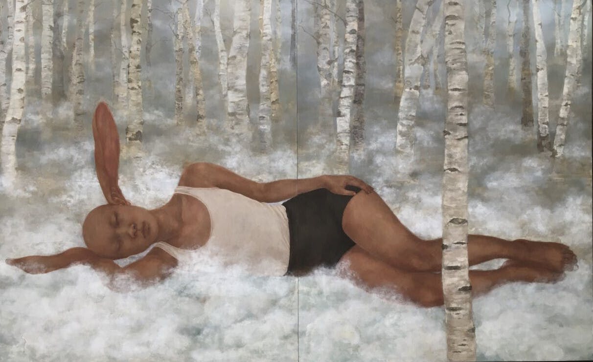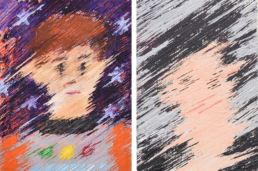 スマートデバイスによるネットワークへのログインは、個人のアイデンティティーを消失しながらも、また新しく生み出し続けているように感じます。私の絵画は、カッターや自作の道具を用いて、絵の具を壊すような行為により、リアルが希釈されインターネットにインストールされる中間の状態を表そうとしています。それは、実感と空虚の間の自分自身、また現代に生きる一人の肉体を可視化しようという試みです。