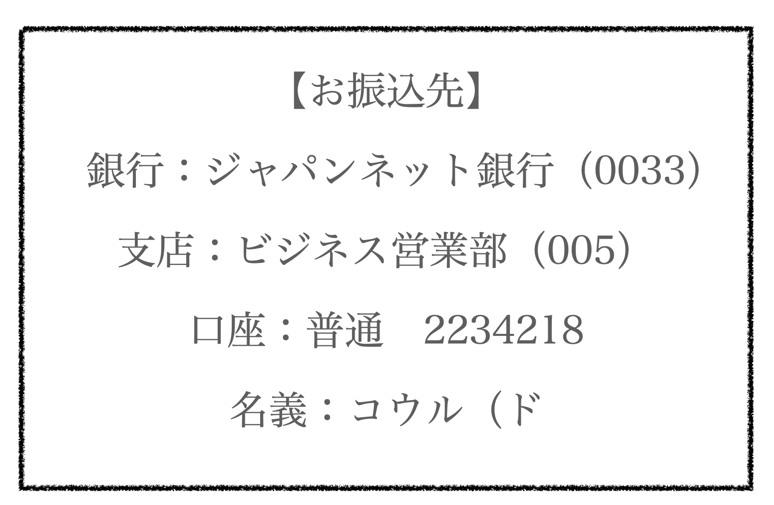 ①ご支援金額を下記の口座にお振り込みください。