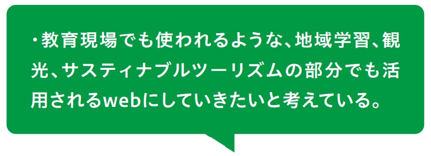 また、紹介したサステナブルな取り組みなどは、次の世代にも向けた地域の学習や探求の場としても活用していきたいと考えています。