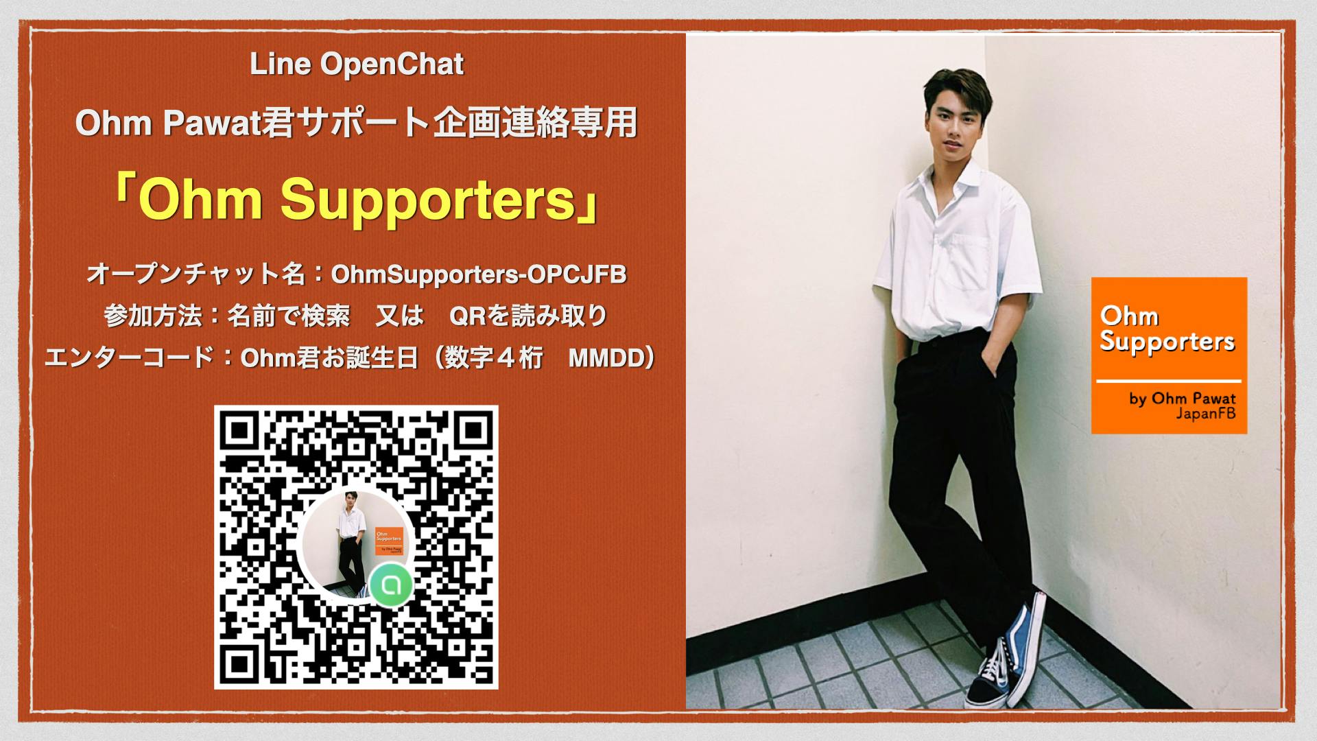 私たちは、タイの人気ドラマ「He's Coming To Me〜清明節、彼は僕のお墓の隣にやって来た」、「The Shipper」に出演している俳優Ohm Pawat Chittsawangdee(オーム・パワット・チットサワンディ)君を日本から応援する「OhmPawat JapanFanBase(以下、略称 JFB表記)」です!