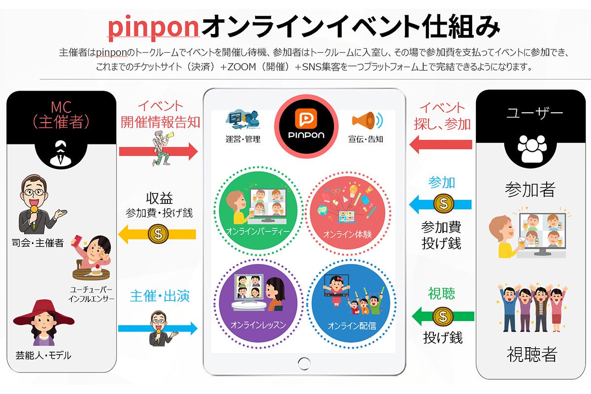 想定されるイベントとして、オンライン婚活、オンラインレッスン、ライブ配信など