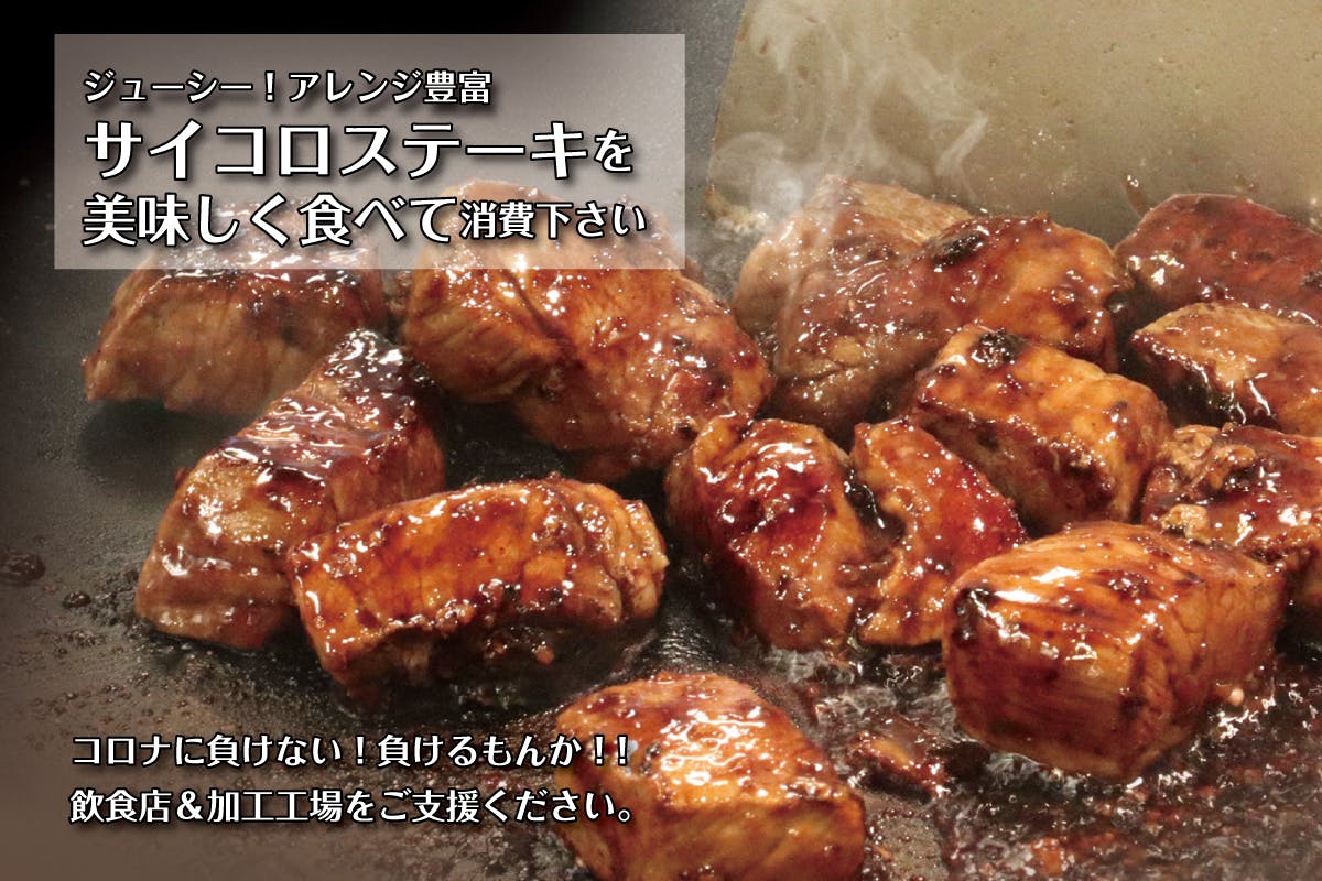 ステーキのカット重量に満たなかったお肉を「サイコロステーキ」として、セット致しました。