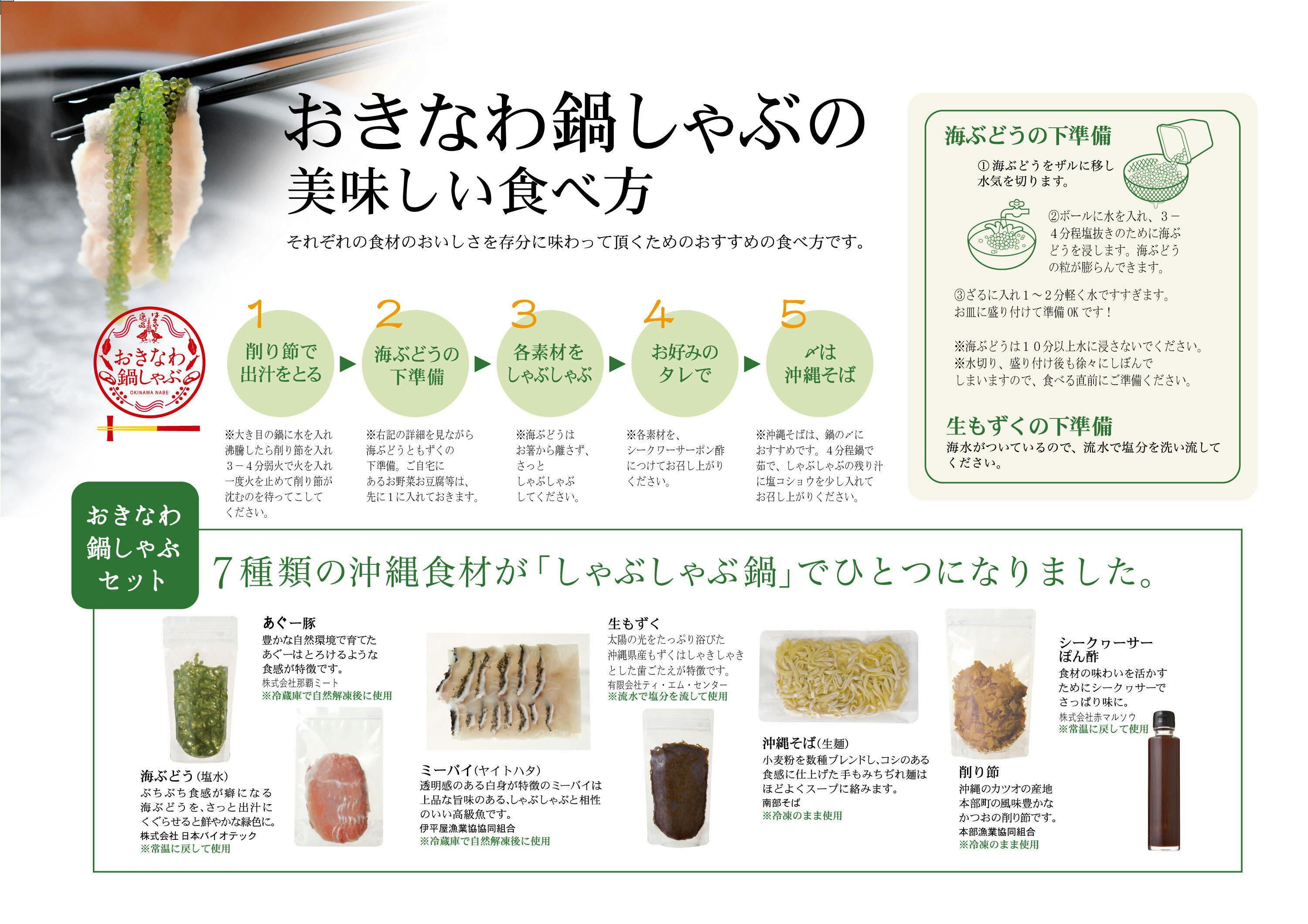 「おきなわ鍋しゃぶ」セットは、沖縄県のプロジェクトで、農林水産業連携チーム「はまやーくらぶ」に所属しているメンバーと一緒に作りました。