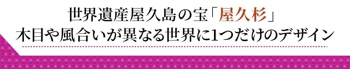 ■本品は世界遺産の宝、屋久島の希少な「屋久杉」(土埋杢・どまいぼく)を贅沢に使用。