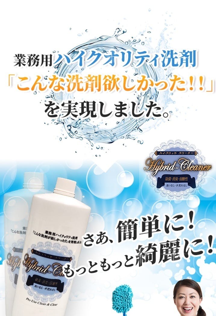 業務用洗剤のトップメーカーで、当時最高の実績を上げ独立しもっと良い洗剤(国土交通省)NETISの認定を洗剤に初めて取得した、リスロン研究所で共同開発したオールマイティ洗剤を一般家庭に広める為、通信販売で広く宣伝アピールしていきたい。